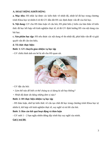 - Sau khi HS trả lời, GV nhận xét và dẫn dắt vào bài học mới: Để đo chính xác nhiệt độ