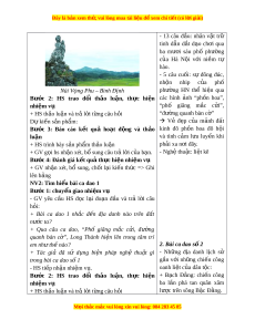 c. Sản phẩm: Suy nghĩ c a ủ HS d. T ch ổ ức thực hi n: ệ - GV nh c ắ l i ạ yêu c u ầ t ừ ti t ế trư c: ớ M i ỗ HS chu n ẩ b ịm t ộ b c ứ nh ả v ề c nh ả đ p ẹ quê hư ng ơ và gi i ớ thi u ng ệ n g ắ n, ọ nêu c m ả nh n ậ v c ề nh ả đ p đó. ẹ - HS ti p nh ế n nhi ậ m ệ v , ụ chia s nh ẻ ng s ữ uy nghĩ, c m ả xúc c a b ủ n ả thân. - Từ chia sẻ c a ủ HS, GV d n ẫ d t ắ vào bài h c ọ m i ớ : C m ụ từ vẻ đ p ẹ quê hư ng ơ thư ng ờ khi n ế em nghĩ đ n ế đi u ề gì? Đ t â nư c ớ Vi t ệ Nam v i ớ bao c nh ả s c ắ tuy t ệ v i ờ và đã đư c ợ nhân dân phác h a ọ b ng ằ nh ng ữ v n ầ thơ trữ tình ng t ọ ngào.Bài h c