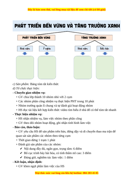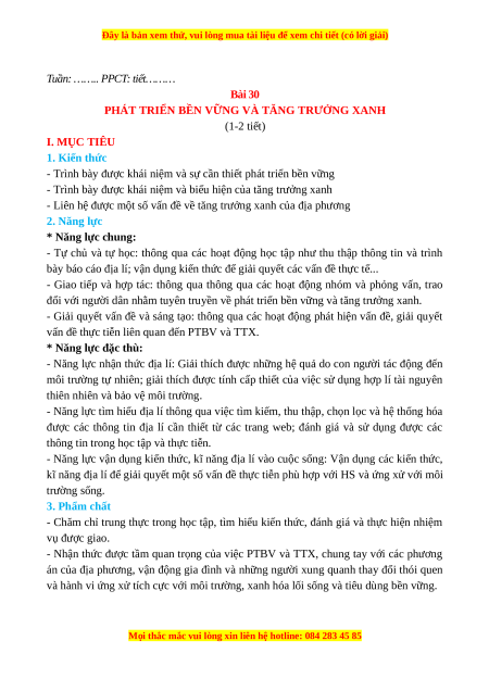 Giáo án Bài 30 Địa lí 10 Cánh diều: Phát triển bền vững và tăng trưởng xanh