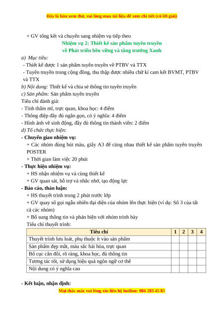 - Phiếu học tập và Tiêu chí đánh giá sản phẩm tuyên truyền
