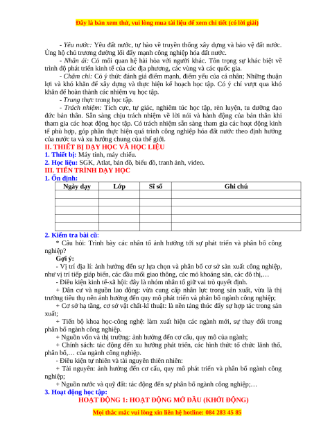 * Câu hỏi: Trình bày các nhân tố ảnh hưởng tới sự phát triển và phân bố công nghiệp? Gợi ý: