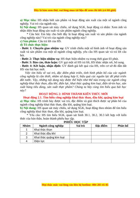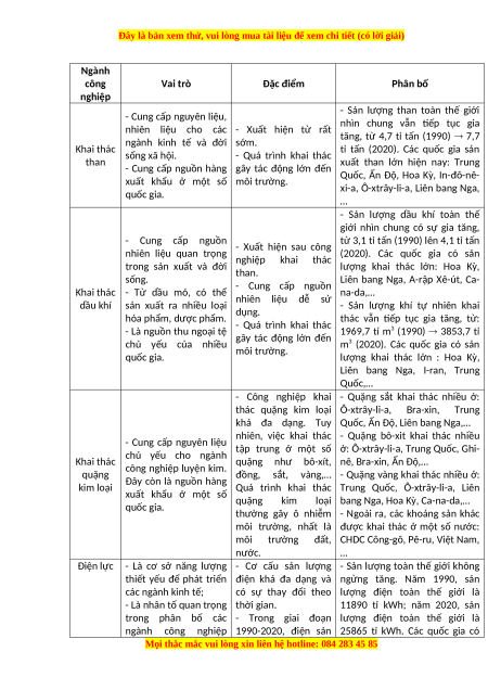 thức của bản thân, hoàn thành phiếu học tập. PHIẾU HỌC TẬP Nhóm Ngành công nghiệp Vai trò Đặc điểm Phân bố 1 Khai thác than 2 Khai thác dầu khí 3 Khai thác quặng kim loại 4 Điện lực