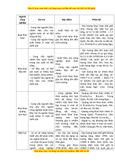 liệu tin cậy về vai trò, trữ lượng, sự phát triển và phân bố một số ngành công nghiệp: