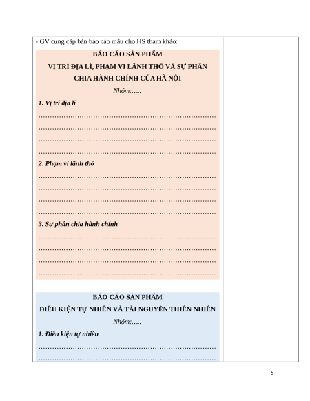 HS thực hiện nhiệm vụ học tập: Viết báo cáo giới thiệu địa lí địa đính kèm phía dưới Hoạt