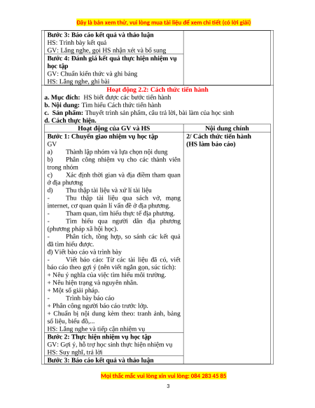 2/ Cách thức tiến hành GV (HS làm báo cáo) a)