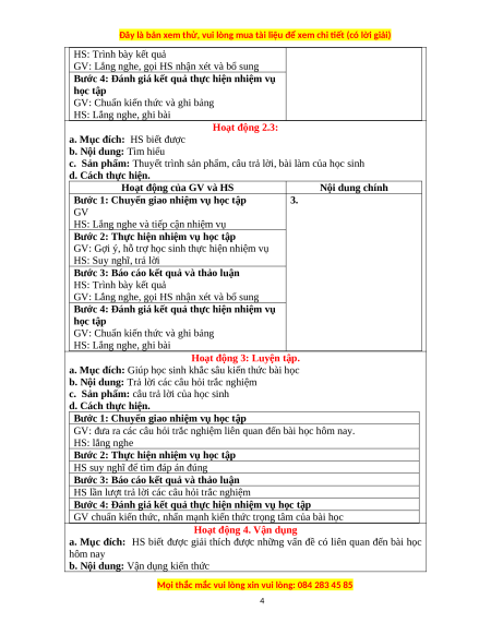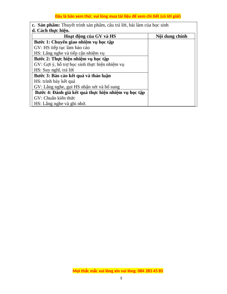 c. Sản phẩm: Thuyết trình sản phẩm, câu trả lời, bài làm của học sinh d. Cách thực hiện