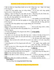 Tình hình phát tri n k ể inh tế Th i ờ gian: 25 phút Mục tiêu: Cơ c u ấ kinh tế đang chuy n ể d ch ị theo hư ng ớ công nghi p ệ hoá, hi n ệ đ i ạ hoá. Nông nghi p, ệ lâm nghi p ệ có s ự chuy n ể bi n ế theo hư ng ớ s n ả xu t ấ hàng hoá. - Tỉ tr ng công ọ nghi p và d ệ ch v ị ụ tăng d n. ầ Phư ng ơ pháp: Tr c ự quan, th o ả lu n, ậ đàm tho i ạ , sử d ng ụ b ng ả số li u, ệ k t ế h p ợ kênh hình, kênh ch SG ữ K Đ a l ị í 9. Hình th c ứ h c t ọ p: ậ th o ả lu n nhóm ậ . Hoạt đ ng c ộ a gi ủ áo viên và h c s ọ inh N i ộ dung Bư c