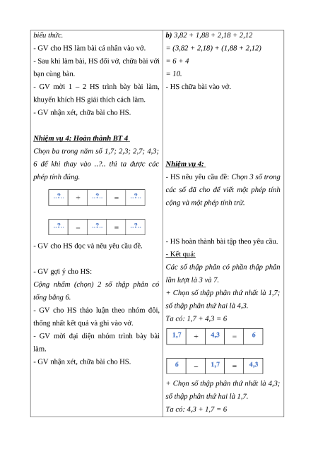 hai số thập phân. Hôm nay, chúng ta sẽ