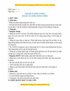 BÀI 30. CÁC DẠNG NĂNG LƯỢNG I. MỤC TIÊU: 1. Kiến thức: