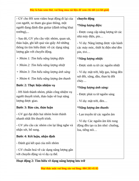 Bước 1: Chuyển giao nhiệm vụ Các dạng năng lượng gắn với