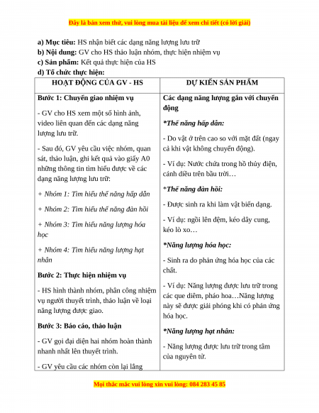 - GV chuẩn hoá về các dạng năng lượng gắn