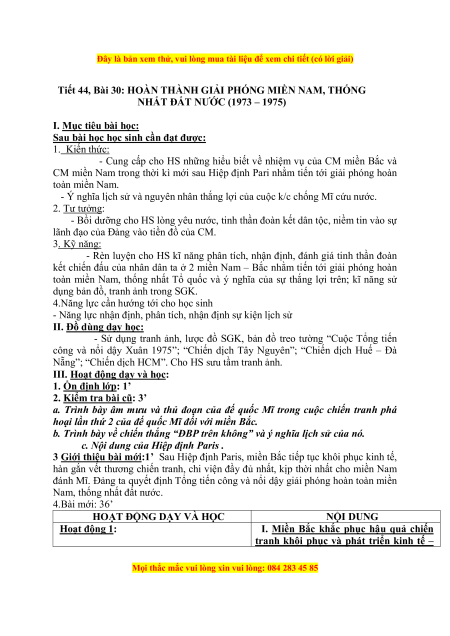 Tiết 44, Bài 30: HOÀN THÀNH GIẢI PHÓNG MIỀN NAM, THỐNG