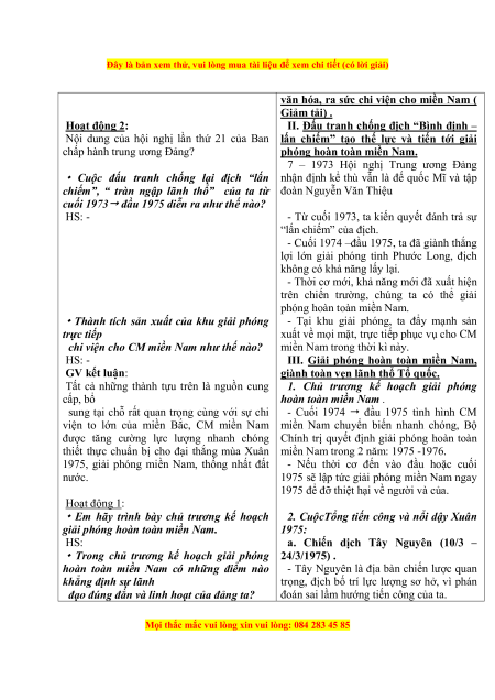 văn hóa, ra sức chi viện cho miền Nam ( Giảm tải) . Hoạt động 2: