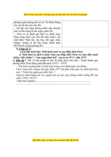 6. Dặn dò:1’ HS về nhà chuẩn bị bài 30 (tiếp theo) tìm hiểu : Hoàn thành giải