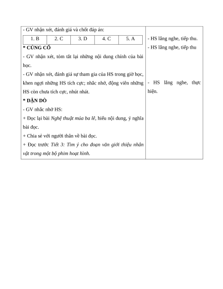 Trao đổi cùng với bạn về một nghệ thuật múa mà em biết? lắng nghe.