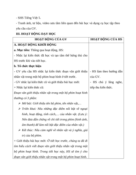 - Tranh ảnh, tư liệu, video sưu tầm liên quan đến bài học và dụng cụ học tập theo yêu cầu của GV.