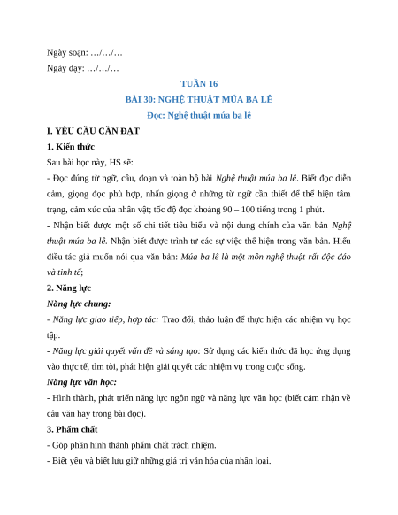 BÀI 30: NGHỆ THUẬT MÚA BA LÊ