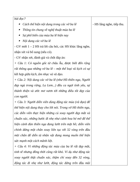 - GV cho HS xem 1 video ngắn Ba-lê: - HS lắng nghe video.