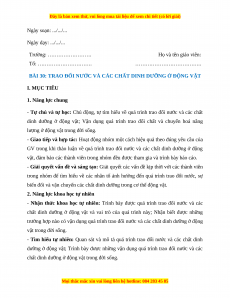 dưỡng ở động vật; Trình bày được những vận dụng quá trình trao đổi nước và các