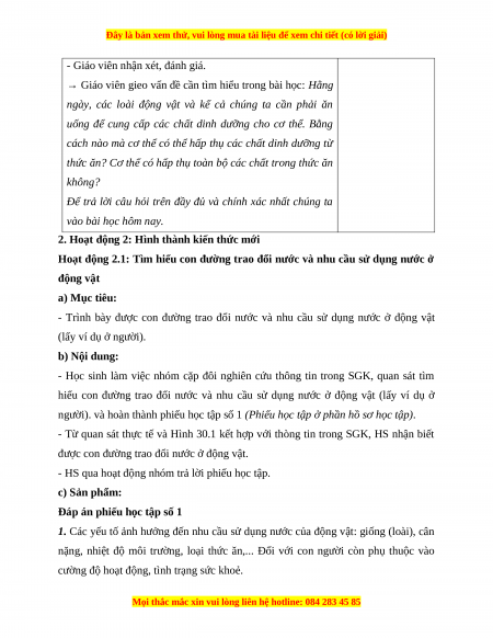 Hoạt động 2.1: Tìm hiểu con đường trao đổi nước và nhu cầu sử dụng nước ở động vật a) Mục tiêu: