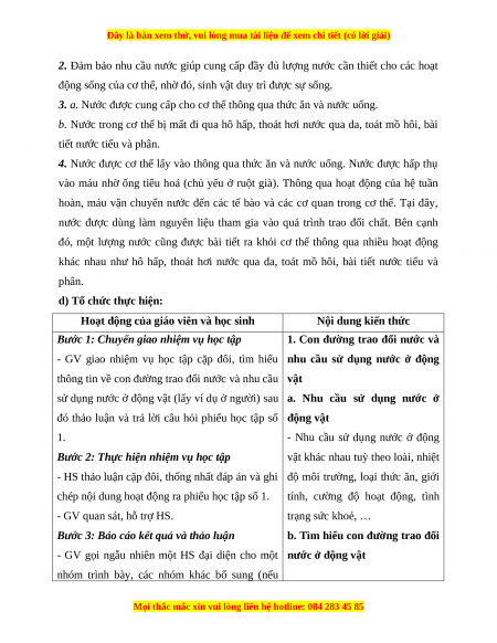 - Nhận thức khoa học tự nhiên: Trình bày được quá trình trao đổi nước và các