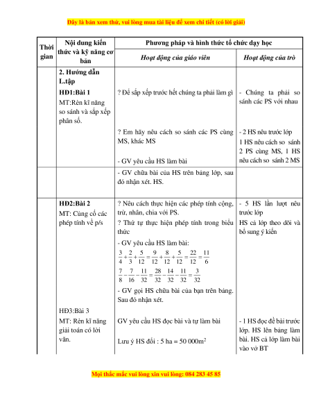 ? Nêu cách thực hiện các phép tính cộng, - 5 HS lần lượt nêu MT: Củng cố các trừ, nhân, chia với PS. trước lớp phép tính về p/s