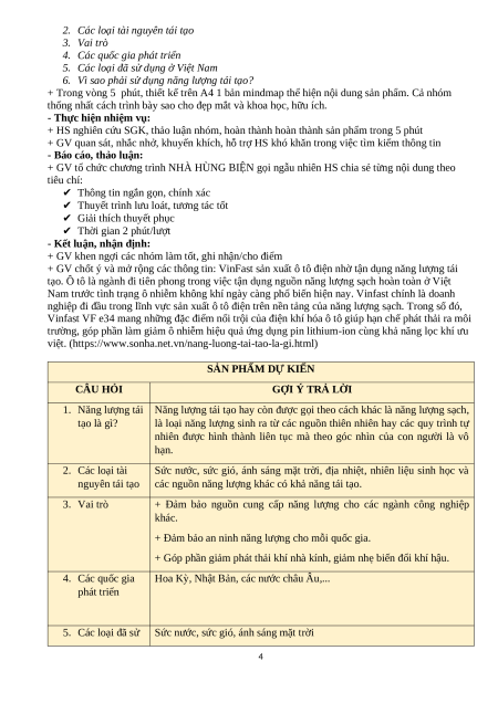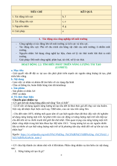 - Điều kiện và thực trạng sử dụng các nguồn năng lượng tái tạo ở Việt Nam. 2. Năng lực: - Năng lực chung: