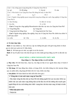 Câu 2: Nền kinh tế của Cộng hòa Nam Phi đứng thứ mấy ở châu Phi? A. 1 B. 2 C. 3 D. 4