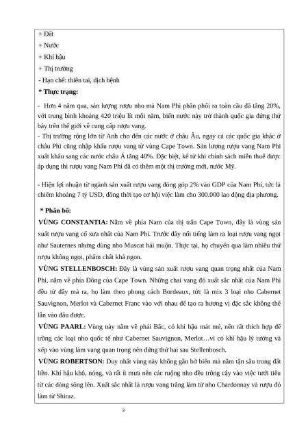 + Nhóm 1,4: Tìm hiểu về hoạt động trồng nho và sản xuất rượu vang của CH Nam Phi.