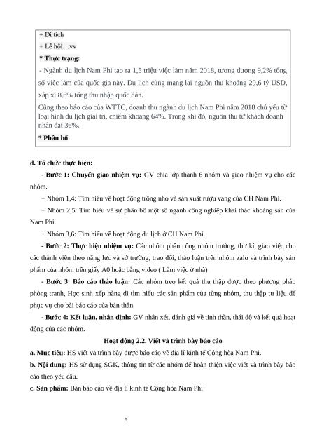 + Nhóm 3,6: Tìm hiểu về hoạt động du lịch ở CH Nam Phi.