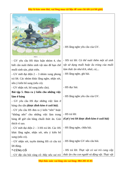 lời. Các HS khác lắng nghe, nhận xét, nêu ý nên làm để giữ cân bằng chuỗi thức ăn