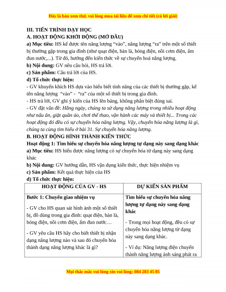 đun nước,...). Từ đó, hướng đến kiến thức về sự chuyển hoá năng lượng.