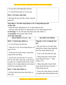 - Đề xuất được biện pháp để tiết kiệm năng lượng trong các hoạt động hằng ngày. 2. Năng lực