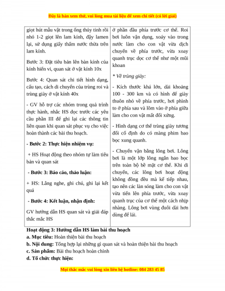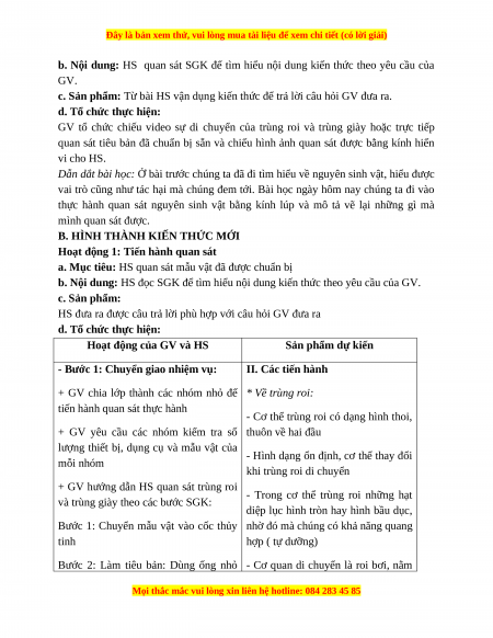 GV tổ chức chiếu video sự di chuyển của trùng roi và trùng giày hoặc trực tiếp