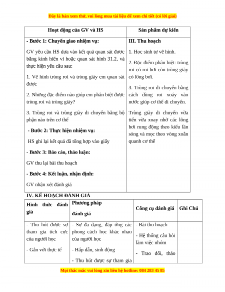 bằng kính hiển vi hoặc quan sát hình 31.2, và 2. Đặc điểm phân biệt: trùng thực hiện yêu cầu sau:
