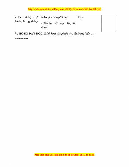 V. HỒ SƠ DẠY HỌC (Đính kèm các phiếu học tập/bảng kiểm....)