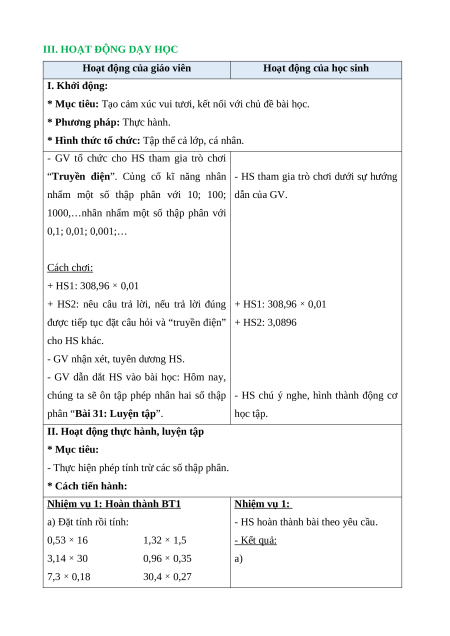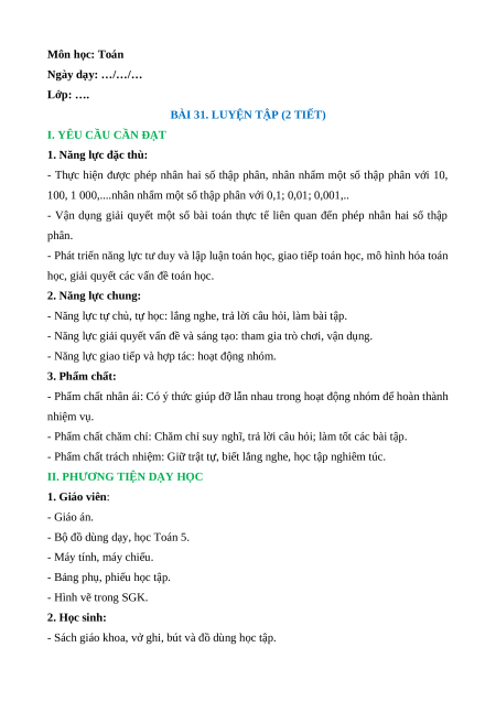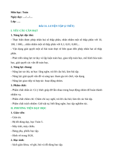 Giáo án Bài 31: Luyện tập Toán lớp 5 Cánh diều