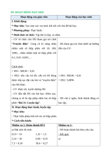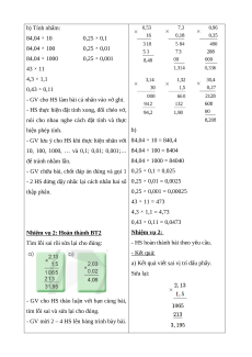 - Thực hiện phép tính trừ các số thập phân. * Cách tiến hành: