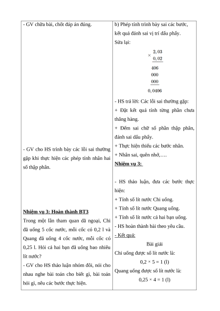 - Thực hiện được phép nhân hai số thập phân, nhân nhẩm một số thập phân với 10,