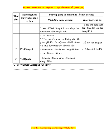vải mua được thay đổi như thế nào 3’ IV. Củng cố