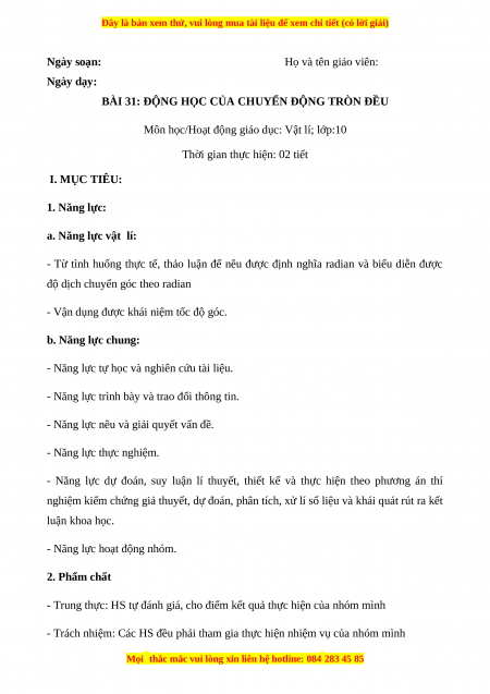 - Vận dụng được khái niệm tốc độ góc. b. Năng lực chung: