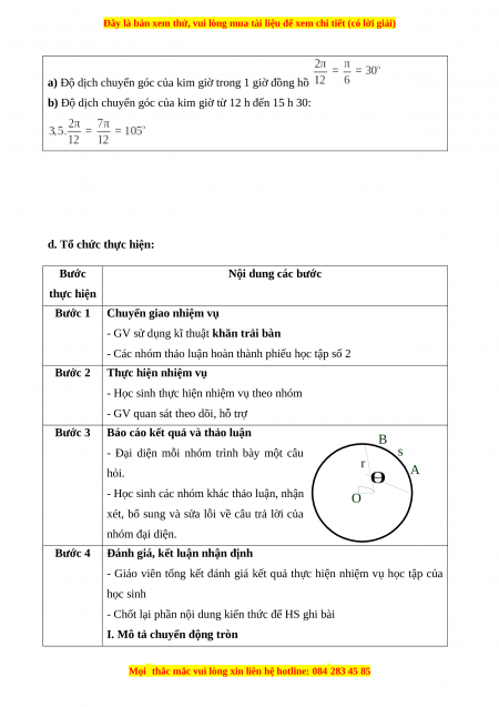 Hoạt động 2.1: Mô tả chuyển động tròn a. Mục tiêu: