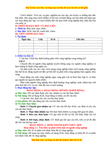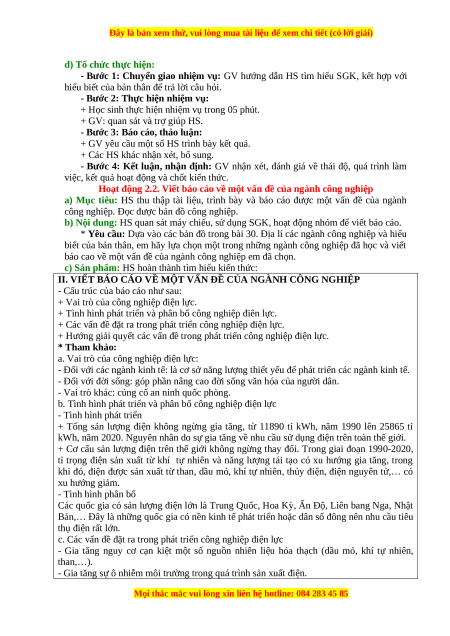 khai thác dầu và điện. Viết báo cáo về một ngành công nghiệp cụ thể. 3. Phẩm chất: