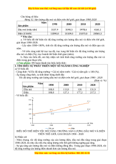 Bảng 32. Sản lượng dầu mỏ và điện trên thế giới, giai đoạn 1990-2020 Năm 1990 2000 2010 2020 Sản phẩm