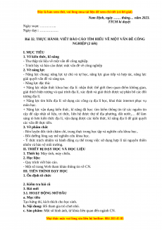 Bài 32. THỰC HÀNH: VIẾT BÁO CÁO TÌM HIỂU VỀ MỘT VẤN ĐỀ CÔNG NGHIỆP (2 tiết) I. MỤC TIÊU