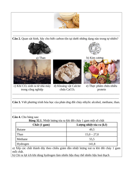 Câu 2. Quan sát hình, hãy cho biết carbon tồn tại dưới những dạng nào trong tự nhiên? a) Than b) Kim cương