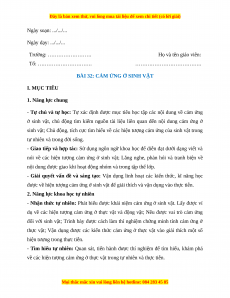 Giáo án Bài 32 Sinh học 7 Chân trời sáng tạo (2024): Cảm ứng ở sinh vật
