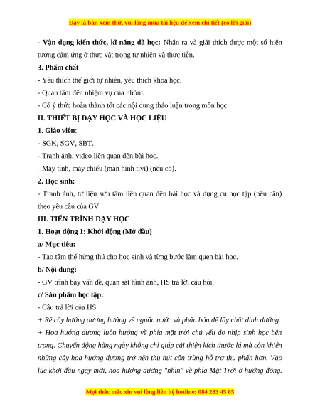 tượng cảm ứng ở thực vật trong tự nhiên và thực tiễn. 3. Phẩm chất