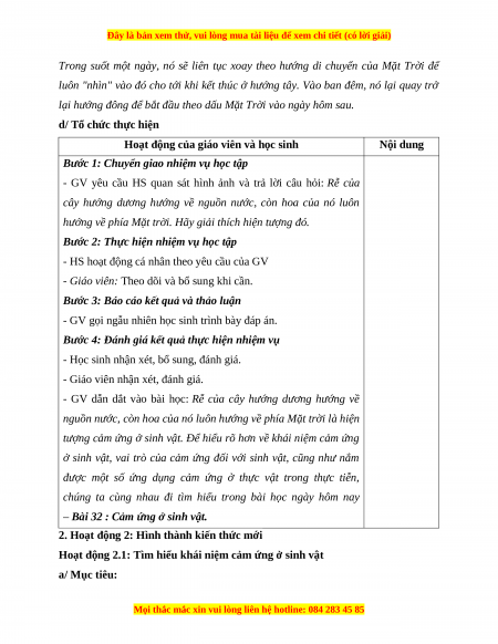Hoạt động 2.1: Tìm hiểu khái niệm cảm ứng ở sinh vật a/ Mục tiêu: