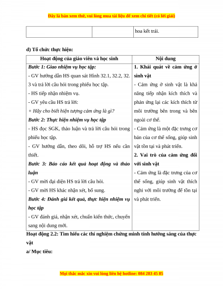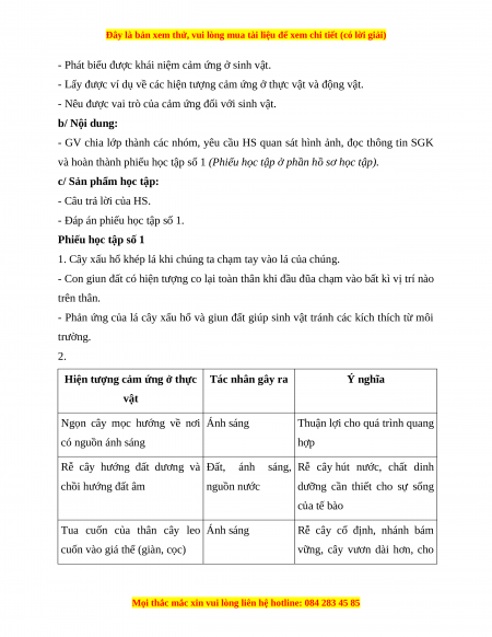 - Nêu được vai trò của cảm ứng đối với sinh vật. b/ Nội dung: